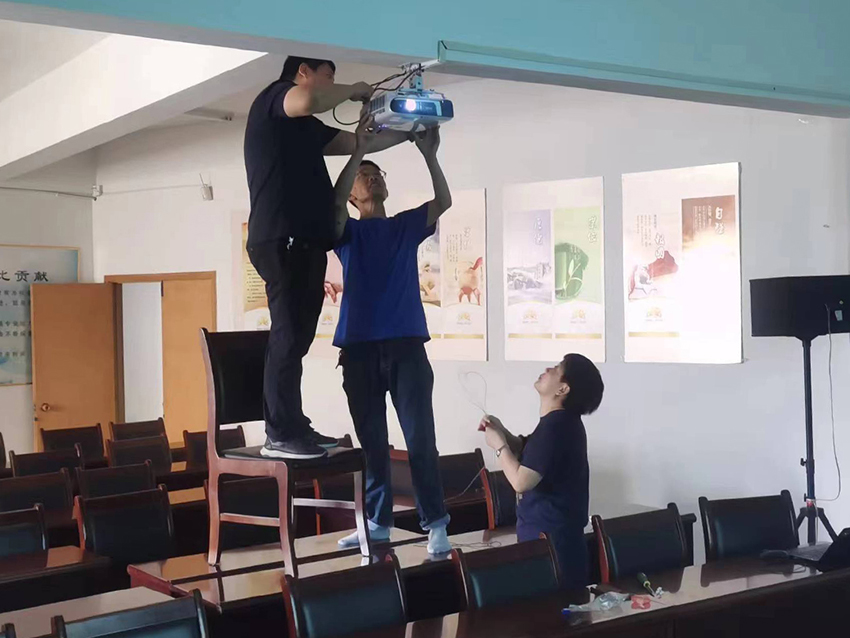 7月11日,李楊猛和譚國(guó)紅兩位同志協(xié)助信息部一起動(dòng)手安裝、調(diào)試新購(gòu)?fù)队皟x。